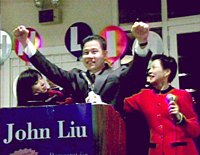 美國(guó)華裔參政開新篇 六名華人在地方選舉獲勝 2001年11月08日 10:09 ![]() 三十四歲的華裔青年劉醇逸新當(dāng)選紐約市議員,成為美國(guó)歷史上第一位亞裔市議員。當(dāng)?shù)厝A人對(duì)其當(dāng)選同聲祝賀,認(rèn)為這是華人參政史上的一個(gè)新的里程碑。(劉醇逸生于臺(tái)灣,五歲跟隨家人移民紐約。)中新社記者 陳建 攝