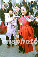 圖:政協(xié)委員龔如心吸引“兩會(huì)”記者 2002年03月03日 21:00 ![]() 全國(guó)政協(xié)九屆五次會(huì)議三日在北京人民大會(huì)堂開(kāi)幕,政協(xié)委員、香港華貿(mào)董事局主席龔如心的亮麗衣著和獨(dú)特發(fā)型,吸引了大會(huì)堂前的記者。中新社圖 劉殊瑾 攝