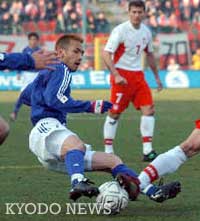 圖文:中田英壽大放異彩 日本隊(duì)2比0完勝波蘭隊(duì) 2002年03月28日 10:44 ![]() 日本國(guó)家隊(duì)頭號(hào)球星中田英壽率領(lǐng)球隊(duì)擊垮歐洲老牌勁旅波蘭隊(duì)(圖/共同社) 中新網(wǎng)巴黎3月28日消息:當(dāng)?shù)貢r(shí)間27日傍晚,日本足球隊(duì)與波蘭足球隊(duì)進(jìn)行了一場(chǎng)國(guó)際友誼賽,日本隊(duì)以2比0完勝對(duì)手。繼21日和烏克蘭隊(duì)交手之后,這是日本隊(duì)在強(qiáng)化比賽中的二連勝。 比賽中日本發(fā)揮出色,在場(chǎng)面上完全壓倒在歐洲賽場(chǎng)戰(zhàn)績(jī)不俗的波蘭隊(duì)。上半場(chǎng)第10分鐘,剛剛和主教練特魯西埃重歸于好的中田英壽首先破門,為日本取得領(lǐng)先優(yōu)勢(shì)。第42分鐘時(shí),在阿根廷博卡青年隊(duì)效力的年輕前鋒高原直泰再下一城,使日本隊(duì)以2比0完勝對(duì)手。 賽后,日本隊(duì)主教練特魯西埃對(duì)比賽進(jìn)行了總結(jié),他分析比賽勝利的原因是:自從去年0比5慘敗給法國(guó)隊(duì)后,球隊(duì)吸取了教訓(xùn)。大家對(duì)日本隊(duì)完全壓制住波蘭隊(duì)特點(diǎn)充滿了自信,這非常好。正在歐洲效力的四名隊(duì)員表現(xiàn)也相當(dāng)不錯(cuò)。小野和中田英壽配合的很嫻熟,鈴木隆獻(xiàn)身般的拼搶也很突出。
