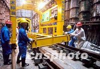 圖:廣州地鐵二號線首期開通段今年底建成通車 2002年04月01日 10:37 ![]() 廣州地鐵二號線首期開通段的三元里至曉港段九站,將于今年底正式建成開通。圖為地鐵施工人員將排軌吊到幾層樓深的隧道下。中新社圖 謝展程 攝