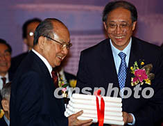 ![]() 擁有一百萬潮藉人口、一百多個潮藉社團(tuán)的香港,4月23日成立了“香港潮屬社團(tuán)總會”, 主席陳偉男向出任榮譽會長的香港長實集團(tuán)主席李嘉誠頒發(fā)證書。中新社記者 任晨鳴 攝