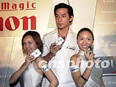 圖:佳能亮麗小姐與吳彥祖共同展示新產(chǎn)品 2002年04月30日 19:51 ![]() 影星吳彥祖30日在香港出席“佳能”舉行“Canon Digital Magic型機一觸大派對”記者會,“佳能”特別安排兩位亮麗小姐與吳彥祖共同展示全新數(shù)碼攝影機。中新社傳真 鄧慶樂 攝