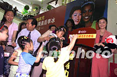 ![]() 亞洲美皇后李冰(右一)與世界小姐達(dá)雷戈,二十一日在北京莊勝崇光商場參加關(guān)愛孤殘兒童慈善行動,并在現(xiàn)場捐款。毛建軍 攝