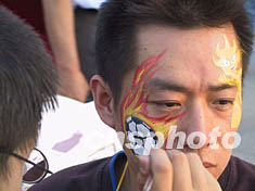 圖:京城流行“世界杯人體彩繪” 2002年06月02日 12:44 ![]() 隨著2002世界杯足球賽的開(kāi)賽,京城許多熱情的球迷在臉上等身體部位繪上世界杯的圖案。圖為一球迷在臉上繪上“飛火流星”足球的圖案,“世界杯人體彩繪”在京城流行起來(lái)。中新社記者 章永哲 攝