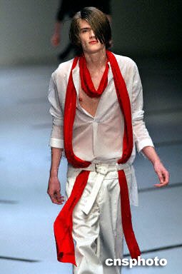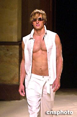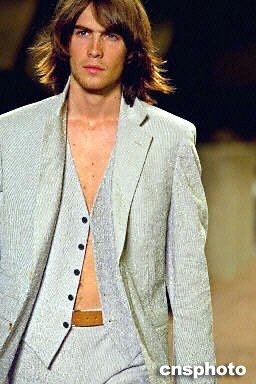 |  | 多圖:性感模特巴黎展示2003春夏男裝 2002年07月02日 16:41    2002年7月1日,2003巴黎春夏男裝展上模特展示法國設(shè)計(jì)師設(shè)計(jì)的白色褲子和無袖襯衫。  模特展示新款男裝  模特展示2003春夏男裝