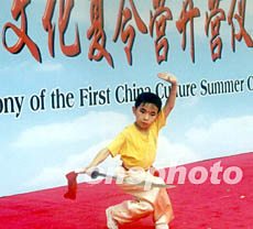 圖:天津霍元甲武術學校小朋友表演武術 2002年07月30日 14:47 ![]() 由中國對外文化交流協(xié)會主辦的首屆中國文化夏令營,七月二十九日在天津華夏未來少兒藝術中心開營。天津霍元甲武術學校的小朋友在開營儀式上表演武術。作者:孫志民