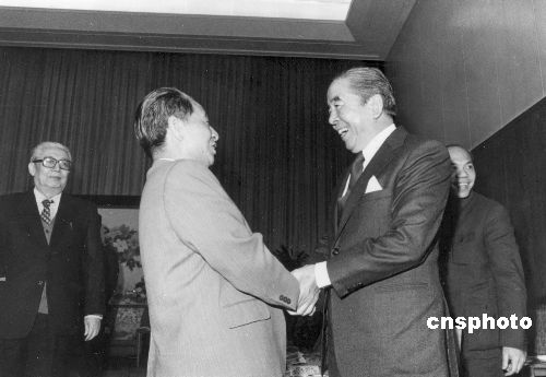 十一月十八日上午,中共中央在北京舉行座談會(huì),紀(jì)念胡耀邦誕辰90周年。圖為胡耀邦會(huì)見(jiàn)港商包玉剛的資料圖片。作者:中新社