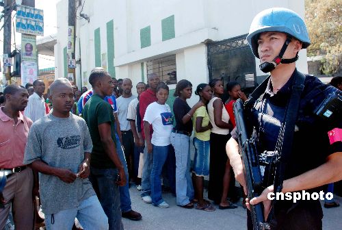 圖:海地大選中國(guó)防暴隊(duì)作好警衛(wèi)準(zhǔn)備