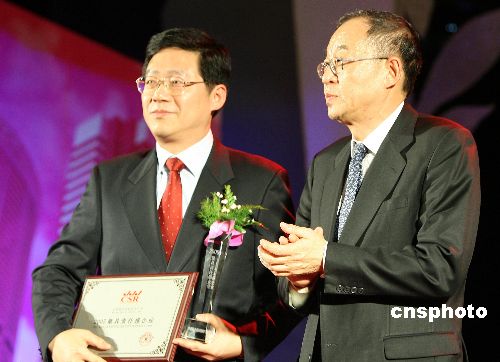 | 國務院僑務辦公室、中國新聞社指導,《中國新聞周刊》雜志社主辦的“中國·企業(yè)社會責任國際論壇”——“最具責任感的企業(yè)”頒獎典禮二月二十二日晚在北京隆重舉行。寶鋼股份有限公司等十家企業(yè)獲得“最具責任感企業(yè)獎”。國務院僑辦副主任劉澤彭(右)頒獎。 作者:廖文靜