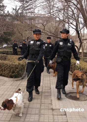 | 北京一隊(duì)警員動用警犬檢查“兩會”場所。自2月28日以來,擔(dān)負(fù)全國“兩會”代表委員住地、場所防爆安全檢查任務(wù)的北京警方刑偵總隊(duì)警犬偵查訓(xùn)練大隊(duì),動用20條警犬對從3月3日起陸續(xù)開幕的全國人大、政協(xié)“兩會”會場、住地、車輛等進(jìn)行全面細(xì)致的防爆安全檢查。作者:吳振英