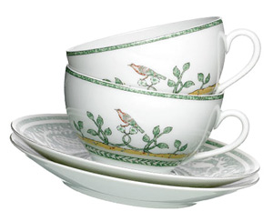中國工筆畫式的花鳥蟲魚也出現(xiàn)在Hermés茶壺和茶杯上。