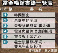“現(xiàn)代愛(ài)因斯坦”霍金抵達(dá)香港,旋即帶起全城熱爆,也成為街頭巷尾的熱門話題。而霍金的名著《時(shí)間簡(jiǎn)史》繁體版及英文版竟然全面斷市,價(jià)值數(shù)百元的《霍金漫游宇宙》影碟銷量亦上升三成.......[全文]