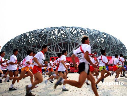 北京奧運(yùn)會(huì)倒計(jì)時(shí)100天群眾馬拉松接力活動(dòng)暨2008年北京國際長跑節(jié),4月30日上午在北京國家體育場公共區(qū)隆重舉行,活動(dòng)中馬拉松接力賽、群眾建身長跑、群眾體育展示等內(nèi)容豐富多彩、氣氛活躍祥和。此項(xiàng)活動(dòng)由國家體育總局、中國奧委會(huì)、北京市政府、第29屆奧林匹克運(yùn)動(dòng)會(huì)組委會(huì)主辦。 中新社發(fā) 宋吉河 攝
