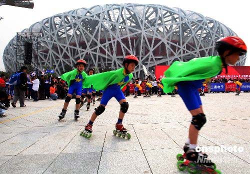 北京奧運會倒計時100天群眾馬拉松接力活動暨2008年北京國際長跑節(jié),4月30日上午在北京國家體育場公共區(qū)隆重舉行,活動中馬拉松接力賽、群眾建身長跑、群眾體育展示等內容豐富多彩、氣氛活躍祥和。此項活動由國家體育總局、中國奧委會、北京市政府、第29屆奧林匹克運動會組委會主辦。中新社發(fā) 宋吉河 攝
