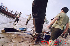 被打撈起來的飛機(jī)螺旋槳。東方 攝