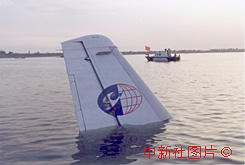墜入漢江中的機翼。東方 攝