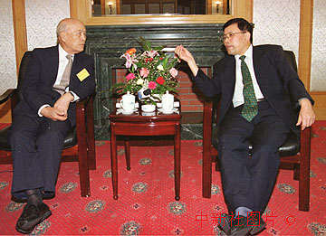 張行湘會見王升率領(lǐng)的臺灣學(xué)者代表團(tuán) 2000年8月7日 08:22 ![]() 遼寧省委副書記張行湘八月五日晚在沈陽市遼寧賓館會見了臺灣“促進(jìn)中國現(xiàn)代化學(xué)術(shù)研究基金會”董事長王升(左)夫婦及其隨行人員,并一起共進(jìn)了晚餐。中新社記者 趙振清 攝 |