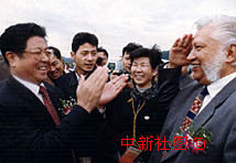 二十日,全國(guó)政協(xié)副主席王兆國(guó)(左一)與出席世界客屬第十六屆懇親大會(huì)的海外、境外客屬團(tuán)體代表親切交流。中新社記者 劉可耕 攝