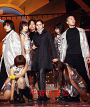 反盜版巨星演唱會(huì)十一月三十日在上海大舞臺(tái)舉行。圖為馬來西亞人氣最旺的歌星茜蒂·諾哈麗莎(中)在表演。中新社記者 潘索菲 攝