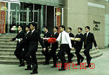 駐澳中資機構(gòu)中國銀行職員為20日舉行升旗儀式演練.中新社傳真 趙健攝