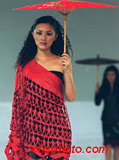 中國(guó)新絲路模特公司,二十二日晚在北京嘉里中心飯店,舉行赴德國(guó)服飾表演。圖為根據(jù)中國(guó)少數(shù)民族服飾創(chuàng)新設(shè)計(jì)的現(xiàn)代服飾作品。中新社圖 東方 攝