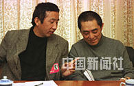 中國著名電影導演馮小寧與張藝謀,十一日參加全國政協(xié)九屆四次會議文藝組討論時,相互切磋拍攝手法。中新社記者 劉可耕 攝