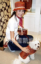 美國(guó)皮具品牌公司邀請(qǐng)香港演員蒙嘉慧與小狗同場(chǎng)演繹,推銷今季服飾與寵物系列。中新社傳真 王順 攝