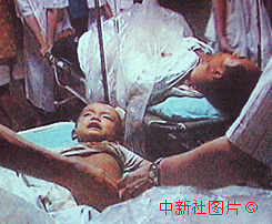 圖:湯志華殘害親子 2001年3月23日 17:07 ![]() 四川農(nóng)民、“法輪功”修煉者湯志華迷信所謂“世界末日”的說教,1999年8月11日凌晨3點多鐘,竟用菜刀將其兩歲多的兒子的生殖器割下,然后又自殘。經(jīng)醫(yī)院搶救,湯志華父子的病情已基本穩(wěn)定。圖為搶救手術(shù)現(xiàn)場。 |