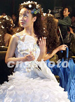香港著名服裝設計師尹泰尉先生,一日晚在京舉行個人專場時裝發(fā)布會,特邀參加此次展示的少女模特,為展示帶來青春浪漫的氣氛。中新社記者 錢興強 攝