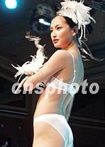 九日晚,在北京嘉里中心飯店舉行的“時(shí)尚大蓬車”內(nèi)衣時(shí)裝秀,吸引了來自京城各處的觀眾,著名內(nèi)衣品牌“黛安芬”展開中國市場的大型推廣活動(dòng)。圖為名模趙俊模特展示內(nèi)衣新款作品。中新社記者 錢興強(qiáng) 攝