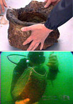 中國云南撫仙湖水下考古的隊(duì)員們六月三日九時(shí)許,在水下考古現(xiàn)場發(fā)現(xiàn)一個(gè)陶器,并將這個(gè)陶器運(yùn)出水面進(jìn)行研究分析,有專家認(rèn)為這是漢代的“釜”(鍋),是一種生活用具。