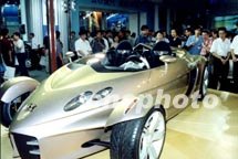 2001第九屆上海國際汽車工業(yè)展覽會(huì)18日開幕。圖為車展上一款外形獨(dú)特的跑車吸引了眾多觀展的上海市民。中新社圖 姜煜 攝