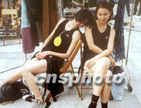 圖:T型臺下的模特小姐 2001年07月03日 12:26 ![]() 日前在北京舉行的一次模特大賽上,兩名參賽模特在緊張的賽事之余,抓緊時間靠在一起休息片刻。中新社記者 錢興強(qiáng) 攝