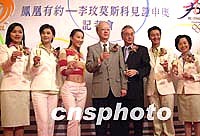 組圖:「鳳凰有約-李玟莫斯科見(jiàn)證申奧」記者會(huì) 2001年07月11日 00:27 ![]() 鳳凰衛(wèi)視10日在香港舉行「鳳凰有約-李玟莫斯科見(jiàn)證申奧」記者會(huì)。鳳凰衛(wèi)視常務(wù)副行玫總裁梁濃剛(中)、執(zhí)行副總裁楊家強(qiáng)(右三)與鳳凰衛(wèi)視眾主持人及歌星李玟在記者會(huì)上為期待北京申奧成功舉杯。中新社圖 鄧慶樂(lè) 攝 ![]() 鳳凰衛(wèi)視10日在香港舉行「鳳凰有約-李玟莫斯科見(jiàn)證申奧」記者會(huì)。特邀歌星李玟、影星周星馳于投票當(dāng)日(7月13日)親赴莫斯科,見(jiàn)證歷史性的一刻,李玟在記者會(huì)上介紹北京申奧標(biāo)志。中新社圖 鄧慶樂(lè) 攝