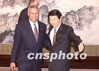 朱鎔基:相信鮑威爾此次訪問有助改善中美關(guān)系 2001年07月28日 17:06 ![]() ![]() 朱镕基會見美國國務(wù)卿鮑威爾。 中新社記者 毛建軍 攝 中新社北京七月二十八日電(記者 譚宏偉)中國總理朱鎔基今天下午在中南海紫光閣會見了到訪的美國國務(wù)卿鮑威爾。 朱鎔基對鮑威爾的來訪表示歡迎。他說,中美關(guān)系正處在關(guān)鍵時期,相信此次訪問有助于改善中美關(guān)系。他說,中方正期待著布什總統(tǒng)今年訪華,江澤民主席將于布什總統(tǒng)舉行會晤,這將是一個非常難得的歷史機遇。 鮑威爾表示非常高興到中國訪問,訪問雖然是短暫的,但是已經(jīng)看到中國發(fā)生了不起的變化。他說,布什總統(tǒng)正期待著對中國進(jìn)行訪問。 截止記者發(fā)稿時為止,會見仍在進(jìn)行。 鮑威爾是今年美國新政府執(zhí)政以來訪華最高級別官員,此行也是為布什總統(tǒng)今年十月訪華做準(zhǔn)備。 鮑威爾是今天上午抵達(dá)北京開始對中國訪問的,十六年前他曾訪問過中國。(完) |