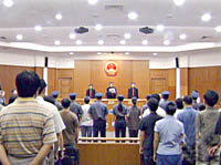 圖文:“法輪功”天安門(mén)自焚事件制造者被審判 2001年08月17日 11:00 ![]() 北京市第一中級(jí)人民法院十七日對(duì)今年一月二十三日制造天安門(mén)廣場(chǎng)自焚事件的五名“法輪功”涉案人進(jìn)行了一審公開(kāi)宣判。 ![]() 十七日上午,北京市第一中級(jí)人民法院對(duì)五名制造天安門(mén)廣場(chǎng)自焚事件的“法輪功”癡迷者進(jìn)行一審判決,以故意殺人罪判處劉云芳無(wú)期徒刑、剝奪政治權(quán)利終身。