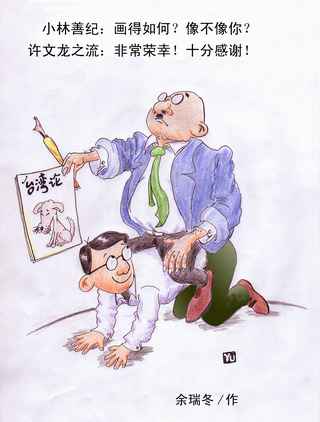 臺灣新漢奸丑面目 2001年03月06日 10:30 相關(guān)報道:中國和平統(tǒng)一促進會批駁《臺灣論》 相關(guān)報道:兩會速遞:張克輝等臺籍人士怒斥《臺灣論》 相關(guān)報道:臺灣當(dāng)局禁止《臺灣論》作者小林善紀(jì)赴臺 相關(guān)報道:臺灣原住民抨擊《臺灣論》歪曲原住民抗日史實 相關(guān)報道:國臺辦嚴(yán)厲譴責(zé)《臺灣論》美化日本殖民統(tǒng)治 相關(guān)報道:臺灣漫畫家將合作出漫畫集反駁《臺灣論》 相關(guān)報道:國民黨要求解除許文龍職務(wù)并禁售《臺灣論》 相關(guān)報道:臺灣“立委”馮滬祥等抗議《臺灣論》在臺發(fā)行 相關(guān)報道:臺灣駐日代表與《臺灣論》作者同唱日本軍歌 相關(guān)報道:日本右翼漫畫《臺灣論》嚴(yán)重扭曲慰安婦史實 相關(guān)報道:臺灣有識之士反對發(fā)行為軍國主義招魂的漫畫《臺灣論》 相關(guān)報道:輿論批駁《臺灣論》宣揚日本殖民統(tǒng)治臺灣有功論 |