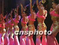 圖:西安為游人演出大型唐代舞蹈 2001年10月06日 10:39 ![]() 西安長(zhǎng)樂宮劇院在國(guó)慶假期里為游客演出《霓裳羽衣舞》。傳說此舞是楊玉環(huán)按玄宗皇帝旨意編排的宮廷舞蹈,以仙女在天宮中的漫舞輕歌來頌揚(yáng)大唐盛世國(guó)泰民安。中新社記者 宋吉河 攝 |