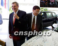 圖文:通用汽車董事長乘APEC快車"回家"記 2001年10月17日 20:57 ![]() 圖為十七日抵達上海的史密斯在親臨上海通用汽車公司時說,當年他第一個在上海首輛別克汽車上簽名。中新社記者 潘索菲 攝