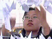 東北大學隆重舉行追悼大會痛悼老校長張學良 2001年10月18日 06:00 ![]() 中國東北大學一名女生十七日在校園里掛起潔白的千紙鶴,悼念日前逝世的前東北大學校長張學良。