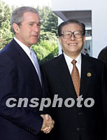 APEC快遞:江澤民主席與布什總統(tǒng)舉行會(huì)談 2001年10月19日 13:58 ![]() 10月19日,國(guó)家主席江澤民在上海西郊賓館會(huì)見美國(guó)總統(tǒng)布什。中新社圖 ![]() 10月19日,中國(guó)國(guó)家主席江澤民在上海與美國(guó)總統(tǒng)布什舉行會(huì)談。中新社圖