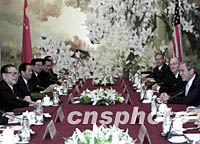 中新社上海十月十九日電(記者譚宏偉)國(guó)家主席江澤民今天上午在上海與美國(guó)總統(tǒng)布什舉行了會(huì)談。這是兩國(guó)元首首次會(huì)晤。兩國(guó)元首就中美關(guān)系和反對(duì)恐怖主義維護(hù)世界和平與穩(wěn)定等重大問題深入交換了意見。 會(huì)談是建設(shè)性的,富有成果的。 江澤民表示,中國(guó)高度重視與美國(guó)的關(guān)系,一向主張中美發(fā)展建設(shè)性合作關(guān)系。為此,雙方可以建立高層戰(zhàn)略對(duì)話機(jī)制,由我們兩人直接或派代表就共同關(guān)心的重大問題交換意見,及時(shí)溝通。 江澤民說,我們生活在一個(gè)豐富多彩的世界里。中美兩國(guó)會(huì)有不同的觀點(diǎn),但我們必須長(zhǎng)期共存。有不同意見應(yīng)求同存異,應(yīng)不斷擴(kuò)大我們的共同點(diǎn)。歷史證明,只要我們這么做,我們的關(guān)系就會(huì)得到發(fā)展。 江澤民說,改革開放后,中國(guó)有了很大發(fā)展,上海就是中國(guó)發(fā)展的一個(gè)生動(dòng)的縮影,我們非常重視與美方的經(jīng)貿(mào)合作,不久前,我們購(gòu)買了三十架波音飛機(jī),這說明中美經(jīng)貿(mào)合作是有廣闊前景的。 關(guān)于反恐怖主義問題,江澤民說,中國(guó)一貫反對(duì)一切形式的恐怖主義,支持對(duì)恐怖主義進(jìn)行打擊。打得準(zhǔn)才能打得狠,應(yīng)避免傷及無辜。中美之間可以建立中長(zhǎng)期的反對(duì)恐怖主義合作機(jī)制。 布什表示,他一直期待著這次訪問以便同江主席進(jìn)行面對(duì)面的會(huì)談。 布什強(qiáng)調(diào),美國(guó)政府高度重視與中國(guó)的關(guān)系。中國(guó)是一個(gè)偉大的國(guó)家,中國(guó)不是美國(guó)的敵人,他把中國(guó)看成是美國(guó)的朋友。美國(guó)致力于同中國(guó)發(fā)展建設(shè)性合作關(guān)系。毋庸諱言,美中之間會(huì)有分歧,但我們將本著相互尊重、坦率相待的精神來處理相互間的分歧。 布什表示,他一直強(qiáng)烈支持中國(guó)加入世貿(mào)組織,他對(duì)中國(guó)即將入世表示祝賀,認(rèn)為無論對(duì)中國(guó)還是對(duì)美國(guó),這都會(huì)帶來好處。他還祝賀中國(guó)申奧成功。 布什感謝中國(guó)在“九·一一”美國(guó)發(fā)生恐怖襲擊事件后迅速做出反映,明確、堅(jiān)定地支持美國(guó)人民反對(duì)恐怖主義,他還感謝中國(guó)在這方面給予的合作。 江澤民說,臺(tái)灣問題始終是中美關(guān)系中最敏感的問題,我們解決臺(tái)灣問題的基本方針始終是“和平統(tǒng)一,一國(guó)兩制”,我們希望美方恪守一個(gè)中國(guó)政策,遵守中美三個(gè)聯(lián)合公報(bào)。 布什表示,他這次來到中國(guó)向中國(guó)重申美國(guó)政府奉行一個(gè)中國(guó)的政策,遵守中美三個(gè)聯(lián)合公報(bào)。 雙方還就共同關(guān)心的重大國(guó)際問題交換了看法。 |