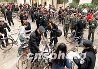 圖:北京警方嚴打盜竊自行車犯罪活動 2001年11月04日 15:49 ![]() 北京市公安局東城分局日前將從盜賊窩點追回的百余輛自行車發(fā)還給市民。首都警方目前正在全市開展嚴厲打擊以盜竊自行車為重點的犯罪活動,以保護市民財產(chǎn)安全。中新社記者 宋吉河 攝 |