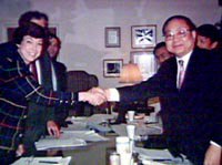 圖:入世歷程:《中美諒解備忘錄》的簽訂 2001年11月08日 14:43 ![]() 1992年10月10日中美兩國簽訂《中美諒解備忘錄》,中國入世談判取得了階段性成果。圖為中方團長(右)佟志廣和美方團長(左)卡倫·希爾斯在簽約儀式上。 |