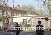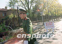 圖文:紐約空難后美國駐華大使館擴大警戒范圍 2001年11月13日 15:37 ![]() 北京警方13日在美國駐中國大使館前增加警力并擴大了警戒范圍,幾條通往使館門前的道路都設置了路障,禁止行人和車輛通行。美國美洲航空公司一架空中客車十二日在紐約墜毀,是否與恐怖主義襲擊有關仍有待進一步調(diào)查。中新社圖 武仲林 攝 ![]() 美國墜機事件后,中國軍方十三日對位于北京建國門外的美國使館區(qū)加強安保工作!熬乓灰弧焙笠恢睂嵭薪鋰赖拿朗桂^區(qū)內(nèi)秩序安定。中新社圖 劉殊瑾 攝