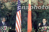 中新社北京二月二十一日十三時(shí)十五分電 本社記者譚宏偉現(xiàn)場報(bào)道:今天下午,中國國家主席江澤民和美國總統(tǒng)布什在結(jié)束大約一小時(shí)四十分鐘的會談后來到人民大會堂中央大廳共同會見記者。 江澤民說,在今天的會談中,我與布什總統(tǒng)回顧了中美關(guān)系三十年的歷程,深入討論了雙邊關(guān)系和當(dāng)前國際形勢,達(dá)成了許多重要共識,取得了多方面的積極成果。 兩國元首將在預(yù)計(jì)三十分鐘的時(shí)間里,向早已等候在這里的三百多名中外記者介紹此次峰會的主要內(nèi)容并回答有關(guān)提問。記者會現(xiàn)正在進(jìn)行當(dāng)中。