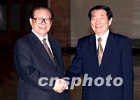 圖:江澤民離京出訪越南 朱镕基等送行 2002年02月27日 16:40 ![]() 中國國家主席江澤民二十七日離開北京前往越南訪問,國務(wù)院總理朱镕基等在北京人民大會堂送行。中新社記者 毛建軍 攝