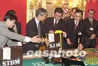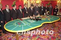 ![]() 澳門博彩股份有限公司一日凌晨正式接手經(jīng)營(yíng)澳門旅游娛樂有限公司屬下的十一間賭場(chǎng),新的博彩合約正式生效。圖為交接場(chǎng)面。中新社記者 宗金柱 攝