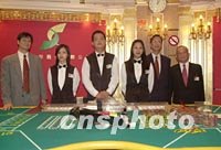 ![]() 澳門博彩股份有限公司一日凌晨正式接手經(jīng)營(yíng)澳門旅游娛樂有限公司屬下的十一間賭場(chǎng),新的博彩合約正式生效。交接后原有賭具和籌碼照常使用。中新社記者 宗金柱 攝