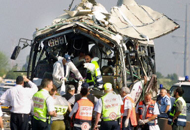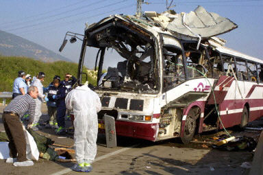 多圖:海法發(fā)生汽車炸彈爆炸事件 哈馬斯宣布負責(zé) 2002年04月10日 17:01 ![]() 以色列警方在檢查爆炸汽車的殘骸 ![]() 救援人員將遇難者尸體從汽車殘骸內(nèi)抬出 中新網(wǎng)北京4月10日消息:當(dāng)?shù)貢r間4月10日早(北京時間10日中午),以色列北部港口城市海法發(fā)生一起自殺爆炸事件,至少造成10人死亡,另有20人受傷。 爆炸發(fā)生在一輛公共汽車上,這輛車是從海法開往耶路撒冷的。以色列方面稱此次爆炸為“恐怖襲擊”,哈馬斯組織已經(jīng)宣布對此次爆炸事件負責(zé)。 爆炸發(fā)生前幾小時,以軍曾于黎明時分向約旦河西岸最大城市納布盧斯的巴勒斯坦難民營發(fā)動進攻,現(xiàn)場可見煙火沖天,以軍炮火、重機槍頻頻開火,以軍直升機也發(fā)射了多枚導(dǎo)彈。杰寧也發(fā)生了交火。 爆炸給海法帶來巨大恐慌,3月31日,海法一家餐廳就曾發(fā)生一起自殺性爆炸事件,造成16人喪生。昨晚,以軍士兵在約旦河西岸城市杰寧的難民營遭到伏擊,13人喪生,9人受傷。這是近18個月來以色列方面發(fā)生的最嚴重單起傷亡事件。以色列總理沙龍隨后稱,以軍在約旦河西岸的軍事行動將繼續(xù),直到將巴勒斯坦武裝分子徹底鏟除。(春風(fēng))